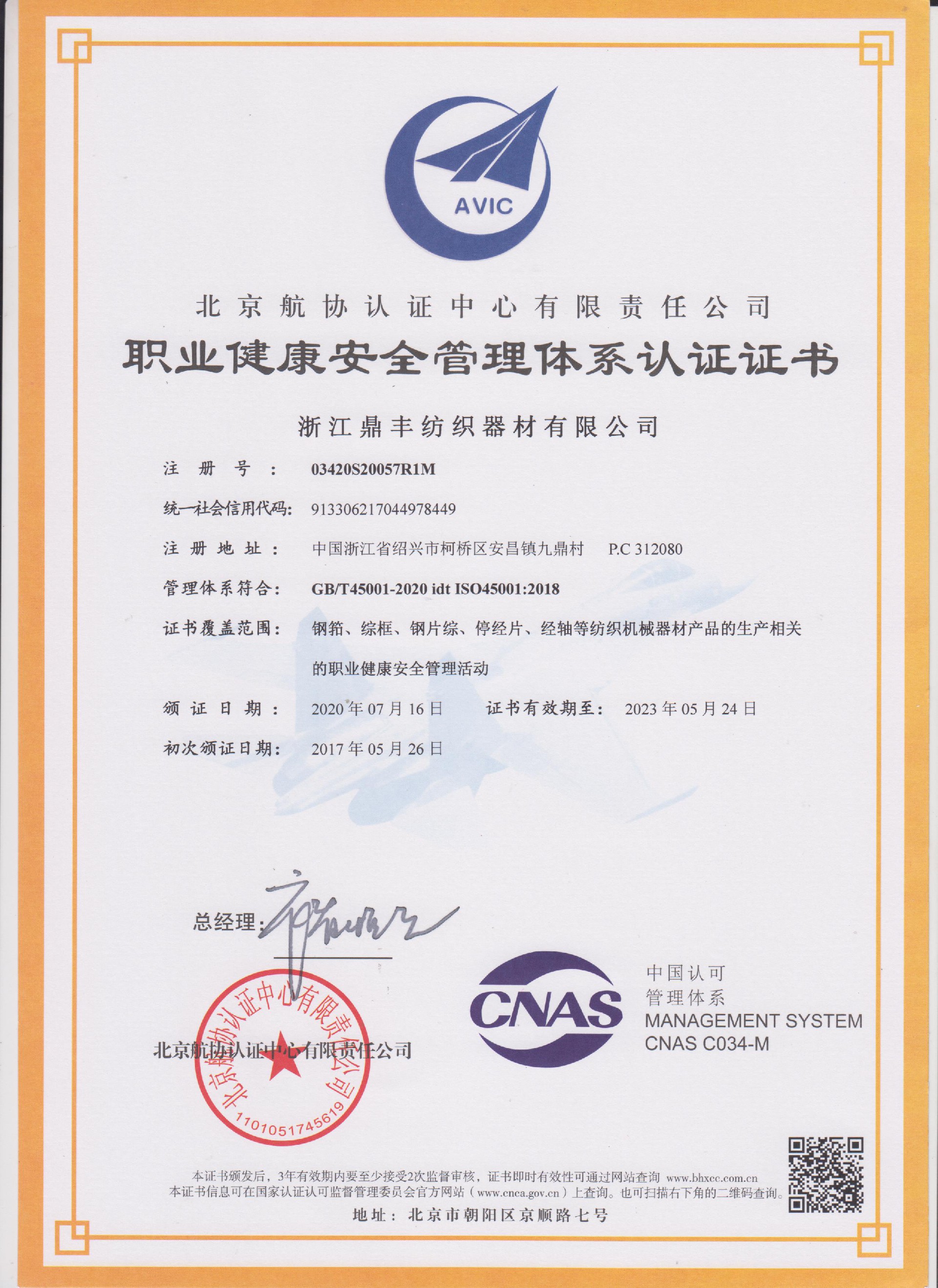 浙江鼎豐紡織器材有限公司始建于1986年,是一家專業生產各類無梭織機用鋼筘:噴氣筘、噴水筘、劍桿筘、其他類型鋼筘;鋁合金綜框、鋼片綜、停經片、經軸、織軸、卷布輥等產品及配件的民營企業。